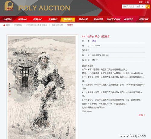 当日,《牧羊女》以70万元起拍。经过1分多钟、十余轮竞价,该拍品最终以130万元落槌(不含佣金)。 据此前媒体报道,朱军习画已有多年,2008年拜画家范曾为师,是范曾的关门弟子。2014年5月,朱军的画展在中国美术馆进行首展,此后其作品赴福建、甘肃、陕西、台湾等地巡展。 2014年朱军举办画展时,曾对媒体表示,自己“拿画笔已经40多年了”,但他也曾称,自己仍是绘画界的“少年”。 6月3日,北京保利2016春季拍卖会在京举槌。在下午的“中国当代水墨”专场中,央视主持人朱军的水墨画《牧羊女》拍出130万元。图为拍卖会现场。宋宇晟 摄 记者就此采访了中央财经大学拍卖研究中心研究员季涛。他表示,此类明星的作品在艺术品拍卖市场上并不多见,尚不属于艺术品拍卖市场中成熟的作品,而且买家出价多少会受到“明星效应”的影响。 他说:“就这一件作品,也没法确定他(朱军)艺术作品的价格标准,还要看其作品在不同作品、不同场合的表现。”