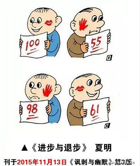 吴联荣创作的《进步与退步》 今年安徽高考采用全国卷,语文作文的题目源自芜湖漫画家夏明一幅早年的漫画。然而,江苏漫画作者吴联荣发微博称,夏明的漫画作品《进步与退步》涉嫌抄袭,并表示已赶到芜湖准备起诉。昨天,吴联荣给新安晚报、安徽网记者发来短信称,他看到了夏明通过媒体作出的回应,或许出现雷同确实只是巧合,所以他放弃起诉,如果在此前给夏明老师带来困惑,愿表示诚挚歉意。 江苏漫画家表示道歉 今年6 月10 日,江苏高邮一小学老师@农村娃画漫画发布微博称:芜湖漫画家夏明入选的高考题漫画“涉嫌抄袭和剽窃”他和学生的作品,并举出三条证据。记者随后联系上“@农村娃画漫画”的实名认证人——江苏省高邮市天山镇中心小学老师吴联荣。吴联荣告诉记者,他已赶到芜湖,找了一家律师事务所,办理了委托书,准备起诉夏明,让法院来裁决。 对此,夏明找出当年发表的漫画作品,发表时间早于吴联荣老师的作品。 昨天中午,吴联荣给记者发来短信称,他看到夏明老师通过媒体对原型漫画《进步与退步》的创作过程进行了回应,出现雷同确实只是巧合。至此,他的质疑得到了回应,所以决定不再为此事维权。 吴联荣称,如果自己的质疑在此前给高考命题组和夏明老师带来困惑,他表示诚挚的歉意,希望夏明老师创作出更多更好的漫画奉献给读者。