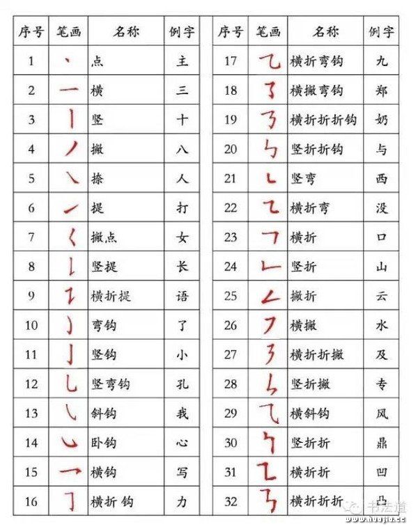 “忄”先写点和点,最后写竖。 “匕”先写撇,后写竖弯钩。 “万”先写横,再写横折钩,后写撇。 “母”字的最后三笔是点、横、点。 “及”先写撇,再写横折折撇,后写捺。”乃”先写横折折撇,再写撇。这个字和”及”字形相近,但笔顺完全不同。 “火”先写上面两笔,即点和撇,再写人字。”登”的右上角先写两撇,再写捺。 “减”先写左边的点和提,再右边的”咸”字”。”爽”先写横,再从左到右写四个”×”,最后写”人”。”讯”右半部分的笔顺是:横斜钩(不是横折弯钩)、横、竖(不是撇)。 “凸”第一笔先写左边的竖,接着写短横和竖,然后写横折折折,最后写下边的长横。 “凹”第一笔先写左边的竖,接着写横竖折,然后写竖和横折,最后写下边的长横。 “出”先写竖折,然后写短竖,再写中间从上到下的长竖,最后是竖折和短竖。 “贯”上边是先写竖折,再写横折,第三笔写里面的竖,最后写长横。 “重”上面的撇和横写后,紧接着写日,再写竖,最后写下面两横(上短下长)。 “脊”字上边的笔顺是先写左边的点和提,再写右边的撇和点,最后写中间的人。 “义”先写点,再写撇和捺。点在上边或左上边的要先写,如”门、斗”等;点在右边或字里面的要后写,如”玉、瓦”等。 “匚”形字,先写”匚”上面的横,然后写”匚”里面的部分,最后才写”匚”最后的折,例如”匹、区、臣、匠、匣、匿”等。 “敝”的左边先写上部的点、撇,接着写左下角的竖、横折钩,然后写中间的长竖,最后写里面的撇、点。这些字还有”弊、蹩、憋、鳖”等。”噩”字的横、竖写后,接着写上边的左右两个”口”,再写中间的横和横下的两个”口”,最后写一长横。这样写符合从上到下、先中间后两边的规则,与”王”字的笔顺不同。 附:笔画笔顺易错字集锦 一、横 1,末笔写二 冉(再、苒)–笔顺:竖、横折钩、中竖、末笔写二。 里(理、童)–笔顺:先写甲,后写二。 重(踵、董)–笔顺:撇、横、写曰,中竖、再写二。 垂(捶、棰、锤)–笔顺:先写千、后写艹,再写二。 【注意】并排三、四横者不按此规律: 堇jǐn(谨、槿)–末二笔为竖、横。 隹zhuī(谁、难)–末二笔为竖、横。 2,土、士分开。 土–寺(侍、诗、痔、等)周、袁、幸。 士–吉(洁、桔、结、秸)志、壳、声、喜、嘉、壹、壶、壮。 3,天、夭分开。 天–吞、蚕、忝tiǎn(添、舔)、奏(凑)。 夭–乔(侨、桥、骄、娇)岙、袄、妖。 4,王、壬分开。 王–呈(程、逞)。 壬–任(凭)廷、淫。 5,首笔是横不是撇:丰(蚌、艳、契)、耒lěi(耕、耘、耙)。邦(帮、梆、绑)的第四笔是撇。刊的第三笔是竖。 6,横“山”的中横向左向右出头不出头。中横向右不出头–寻、帚、刍(邹)当、雪、扫、妇、侵。 横“山”有竖穿过时中横向右要出头–聿yù(建)秉、捷、唐、康、争、兼。 中横向左都出头–疟、虐(谑)末笔笔顺:横、竖折、中横。 7,讯的右旁和丑笔顺不同。 讯的右旁(汛、讯、迅)–笔顺:横折弯钩、横、竖。(末二笔为十)。 丑(扭、纽、钮)–笔顺:横折、竖、横、横(末二笔为二)。 8,毋、贯笔顺。 毋(wú)笔顺:竖折、横折钩,[先]撇、[后]横(两边出头)。 贯的上部部件–笔顺:竖折、横折、[先]竖、[后]横(两边出头)。 9,衰的笔顺。中间部件:竖、横折、[中间]长横(两边出头)、短横(堵口)。 10,皮的前三笔笔顺:横钩、撇、竖。 二、竖 1,竖与撇之分。临、监、坚、竖、紧:第二笔是竖,不是撇。旧:第一笔是竖。归:第二笔是撇。 2,“周”与“同”第一笔不同。同、冈、网、罔:第一笔是竖。周、用:第一笔是撇。 3,“月”第一笔有变化。育、肯、胃、有、肩:月在下,首笔为竖。肚、肌、肠、期、朗:月在左右,首笔为撇。 4,强调后写竖。假、暇、遐(霞)–中间部件前三笔笔顺:横折、横、竖。报、服–右旁前两笔笔顺:横折钩、竖。 5,出头与不出头:出头–由(黄寅)、黾(渑、绳、蝇)奄(俺、淹、掩)。不出头–龟(阄)。出头–异、弄、弃、弁、弈、算、弊。不出头–畀bì(痹、箅、鼻)。出头–圣(怪、坚)。不出头–泾、径、经、劲、茎、颈。 6,号、考、污–末笔向上不出头。末两笔笔顺:横、竖折折钩。“考”字下部不能如阿拉伯数字“5”。 7,收的左旁,叫、纠的左旁–竖提与竖不交叉。不能写如阿拉伯数字“4”。 8,做左偏旁时向右不出头:身(射、躬、躲)–第六笔横、第七笔撇,都向右不出头。舟(舰、般、航)–第五笔横,向右不出头。 ▲注意:耳(取、职、联)–做左偏旁时末笔改提,可出头。 9,非字的笔顺与笔画:非(罪、韭)笔顺:[左]竖(不是撇),三小横(最后一小横不为提),[右]竖、三小横。 三、撇 1,应该撇通下来:免(兔、挽、勉)、奂(唤、换、涣)、象(像)、鬼(傀、愧)、卑(婢、碑)–第六笔都是一撇通下来。 2,不是一笔通下来–麦七画、美九画、敖(傲、熬、遨)十画、象十二画。 3,不要多一撇–畏(喂、偎、煨)、展(辗、碾)、代、武、贰。 4,先撇与后撇–先撇:九、及。后撇:刀、力、乃、万(笔顺:横、横折钩、撇)、方(笔顺:点、横、横折钩、撇)。 5,撇向左出头与不出头:出头–化(华、花、讹)右旁笔顺:[先]撇,[后]竖弯钩,两笔之间相交叉。不出头–匕bǐ(比、北、此、死、旨、尼、老)、仑(论、伦、论、轮)笔顺:[先]撇、[后]竖弯钩,两笔不相交叉。比左旁笔顺:横、竖提。北左旁笔顺:竖、横、提。此左旁笔顺:[中]竖、横、[左]、提。 6,末笔