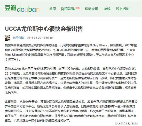 6月29日,据豆瓣用户“66号公路”称尤伦斯当代艺术中心(UCCA)将被出售。消息目前尚未经证实。此次UCCA被出售的传闻是否属实,引起了艺术界的高度关注。