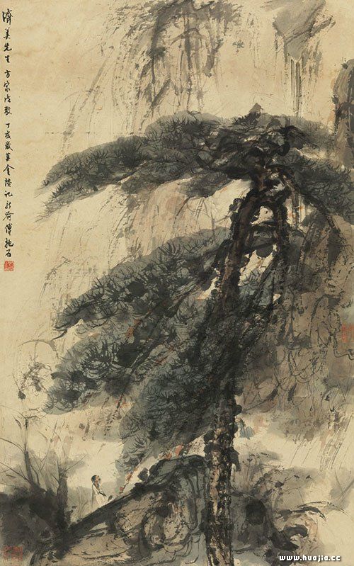傅抱石画了许多的屈原,可以说屈原对他来说是一个符号,阐述了他心中的民族气节。而他同样也画过其他人物来表达心中这种豪迈而悲壮的情绪。 ![]() 1943年《苏武牧羊》,故宫博物院馆藏 此幅苏武牧羊同样作于抗日战争时期,同样是傅抱石喜爱的传统历史题材。画面描绘了汉朝将领前来迎接苏武回国的瞬间,这个瞬间苏武等了很久,而傅抱石大概也在期待这样一个瞬间吧。画面中的苏武头发胡子尽数花白,身体垂暮神情却倨傲凛然,紧握旌节的双手线条干练,与柔软吹起的衣袍形成鲜明的对比。背后的匈奴官员和汉朝将领们则神态各异,更加衬托出苏武的沉稳坚毅。整幅画面色彩厚重,压抑中带着丝丝的喜悦和希冀,正是傅抱石当时心境的写照。在传统中国画中由于条件所限,一直讲求的是写意传神而非勾画描形。但在傅抱石的笔下,一切的细节却似乎都清晰了起来,不仅有传统文化中的意蕴,还有顾恺之般的细腻形态,着实令人佩服。 人物画中看浪漫-傅抱石画云中君 虽然傅抱石本人算不上美男子,但是从他的眉眼间似乎总能看到些许的风流俊雅之态,正如他的人物画一般充满了潇洒浪漫气息。虽然傅抱石画了很多豪迈之作,但这并不意味着他没有自己的浪漫。除了历史题材之外,傅抱石还非常衷情传统神话题材,并以此绘制了许多作品。今年春拍时震动艺术品市场的《云中君和大司命》就是其中一个。该作品是根据郭沫若《屈原赋今译》所做,绘制了屈原《九歌》中的两位神明云中君和大司命。二位神明在云雨中驱车前行,神情从容仪态高贵,画面飘忽浪漫,令人对神仙世界充满向往。 ![]() 1954年《云中君和大司命》,2016年北京保利国际2.3亿元 而事实上除了这幅天价作品外,傅抱石还有很多描绘神话传说的作品,虽有河伯一类刚毅主题但大体上还是以女性角色居多。傅抱石笔下的女神非常有辨识度——她们通常都拥有纤细却清晰的眉眼,清秀浅淡的鼻子和红润精致的嘴,而这些组合到一起之后,就形成了傅抱石作品中所独有的雍容媚态。这些女性往往美艳惊人身伴芳华,似有媚态娇艳可爱,但同时却又端庄高贵令人难生亵渎之心,只能仰望慨叹其魅力。 ![]() 1946年《山鬼》,2016年中国嘉德5175万元 上面这幅山鬼是今年春拍中的傅抱石的另一幅作品。山鬼通常被认为是“巫山神女”一类的神明,在屈原的描写中她衣着“被薛荔兮带女萝”,神态“既含睇兮又宜笑”,身姿“善窈窕”,是一位人神合一为情所困的多情神仙。也正因为如此,相比云中君一类的神明,傅抱石把山鬼描绘更加富有人性,无论是穿着打扮还是举止神态,都更加的接近一个思念心上人的少女。画面上的山鬼以浅淡而清晰的曲线勾勒而成,衣袂飘逸恍有风过,而在这风中山鬼回首而立,眉眼纤细拉长,浅墨打底重墨点睛,朱唇勾线清晰颜色润泽,发丝笔墨温和而柔顺。整个画面配色淡雅肃穆,却透露着少女的纯情和期待,令人难以忘怀。事实上,傅抱石所绘山鬼有的矗立在风雨中,有的矗立在和风里,有的颜色清新透白,有的颜色阴郁晦暗,但无论环境几何,傅抱石笔下的山鬼,几乎全部都是回首远望的。这大概就是他对屈原描绘“山鬼期盼心上人”的最忠实写照吧——此种浪漫,被傅抱石富于轻盈灵性的笔墨发挥的淋漓尽致。 ![]() 1947年《山鬼图》,2010年安华白云360万元 《二湘图》是傅抱石受屈原《楚辞》触动而绘制的作品。一般认为二人是舜帝的两位夫人娥皇和女英,舜死后二人悲痛不已后殉情成为湘水之神。傅抱石画作中的二位湘夫人通常没有背景或者背景极其简单,这或许跟屈原“袅袅兮秋风,洞庭波兮木叶下”的描述有关。二位女神面容清秀高贵,容姿神态从容不紊,行走于粼粼水波之上(或木叶纷飞之间),令人为之神往。细腻飘逸的笔划加上简练富有意境的背景,让整个作品准确的展现出屈原描写的浪漫情感,观者感同身受沉浸其中。傅抱石人物作品浪漫优雅,与他能够精准描绘屈原文风的能力也是息息相关的。 ![]() 1945年《二湘图》,2015年香港苏富比3548万元 ![]() 1954年《二湘图》,2014年北京保利国际3507.5万元 ![]() 1960年《二湘图》,2014年北京瀚海2875万元 人物画中看理想-傅抱石画陶渊明 傅抱石的子女在回忆父亲时,提到傅抱石有一方印章“往往醉后”,只在得意之作上使用。这也进一步说明了傅抱石对酒的依赖。事实上,如果说屈原是傅抱石精神世界的男神,那嗜酒且贫寒归隐的陶渊明就是傅抱石现实生活的偶像。虽然如今傅抱石的作品动辄拍出千万上亿的天价,但在当时,傅抱石的生活其实是非常贫寒的。在为人称道的金刚坡时期,所谓的“抱石山斋”也只不过是一个杂物房,傅抱石要等到家人都吃过饭,再把房东借给他家的餐桌搬到门口抵着门,借着外面的光线作画。在此种贫寒境遇下,虽然傅抱石无论绘画作品还是书籍论文都非常高产,但心中想必还是有郁结的。据傅抱石的女儿傅益璇回忆,傅抱石“为人义气、无酒不欢”。这似乎都与陶渊明的生活如出一辙,也难怪傅抱石钟情于逍遥洒脱的陶渊明了——毕竟,人活着总要有情怀寄托的。也许在傅抱石心中,也有着一份类似陶渊明乃至其他隐士高人的情怀理想:归隐田园,把酒言欢。 ![]() 1944年《还庄图》,2011年北京保利国际2242.5万元 在线条上,傅抱石的这些作品往往并不如绘制仕女图那般纤柔细腻,同样是勾线,笔墨却更有韧性,在接近于