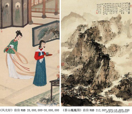 对于国画大师傅抱石来说,可能画俩萌妹比画一座巍峨高山“更有赚头”。 近期,傅抱石金刚坡时期作品《风光好》即将在明天开始的嘉德秋拍中亮相,估价3800万人民币。而同场上拍的还有傅抱石的《泰山巍巍图》,同样是金刚坡时期作品,估价却仅有1800万。同出一人之手,同出一个黄金创作期,为何会隔出2000万的差距?可见“金刚坡”三字虽有意义,但意义有限——毕竟去年被刘益谦2.3亿收入囊中的《云中君和大司命》就是傅抱石离开金刚坡之后的作品。