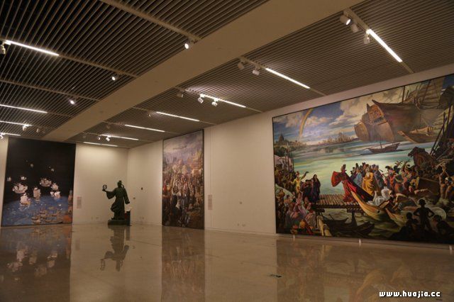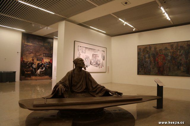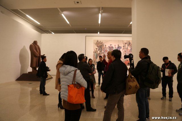 展厅现场 在提问环节,冯远、徐里、刘健围绕着“历史画创作工程”如期竣工的意义、作用,对主题性美术创作的未来趋势,以及“历史画创作工程”项目最初构想与基本构架如何建构与框定,在当代历史画创作中取得哪些主要成果等问题回答记者的提问。 冯远表示,在146件入选作品基础上形成的中华史诗美术大展有以下特点,第一是鲜明的中国文化立场、中国艺术风格、气派的特点。其次是现实主义精神与写实主义、浪漫主义、表现主义等诸种艺术形式充分兼容互补的特点。第三是凝聚集体智慧、凸显艺术家个性风貌的特点。最后是多画种、多面貌、大体量的特点。 他表示,由于此次“历史画创作工程”完成后的全部作品将长期陈列于国家博物馆的主厅和各回廊中,为达到博物馆陈列的整体规划设计,作品尺幅都在原有基础上增大了体量面积,这不仅是工作量的增加,体力投入的增强,也是对作品的质量水平提出了更高要求,不啻是对作者的一种能力的进一步考验。而能够在国家殿堂中陈列的视觉艺术品,是为国之鸿宝,堪比重器,其意义甚至远远超出作者的生理年龄与生命的价值。参与创作的美术家都深知这份荣耀的来之不易而无一有怨言,无一提出非份要求和报酬索取,都以负责任的态度按期向国家交出了代表自己最好水平的答卷。 刘健认为,此次美术创作吸引和凝聚了我国当代美术界最具实力的老中青优秀艺术家。与以往历史画创作技法、材质多出于中国工笔画、油画和单体雕塑不同,此次历史画创作的画种扩充了版画和多人物组雕、浮雕类装置形式。 徐里介绍,在工程组委会和专家们的指导下,艺术家们认真研究历史典籍资料,深入理解并把握历史的主题切入点,不断强化对主题文化内涵的认识,将集体及个人对历史文化的思考和对艺术品格、理想价值的追求,自觉地贯注到对历史风云、文明进步以及中国精神、中国气派的艺术表达之中。 根据安排,“中华史诗美术大展”将于2016年11月20日在国家博物馆盛大启幕。