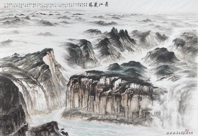 此作品名称《长江揽胜》,据说在一百多件入选作品中,山水作品只有三件,这是其中之一。 作品确实气势磅礴,让人印象深刻——可是怎么就那么眼熟呢?