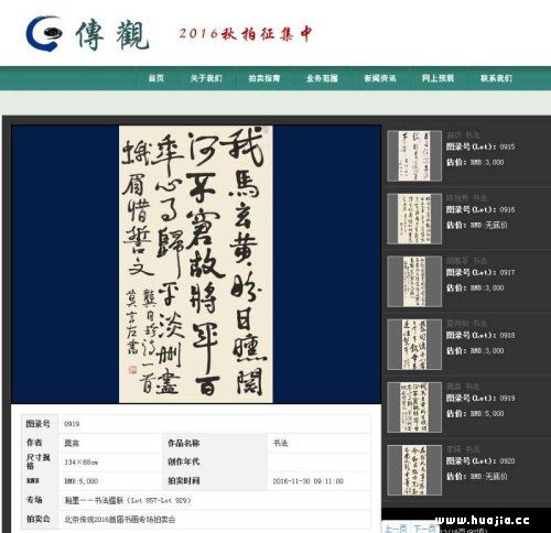 资料图:莫言。 中新社记者 韩海丹 摄 莫言书法作品亮相“瀚墨——书法楹联”专场。拍卖公司官网截图 中新网北京11月30日电(记者 宋宇晟)30日,作家莫言一幅书法作品亮相拍场,仅以起拍价5000元人民币落槌,反响平平。作为著名作家,莫言作品在拍场上实际表现如何?中新网(微信公众号:cns2012)记者发现,其中绝大部分作品是在2012年莫言获诺奖后成为被拍卖的对象,而相关作品在拍场上的成绩并不稳定,最高成交价可达97.75万元,但同时也不乏流拍作品。 30日,北京传观2016首届书画专场拍卖会在北京举行,莫言书法作品亮相“瀚墨——书法楹联”专场。记者在传观拍卖官网看到,该作品尺寸为134×68cm,上书清代龚自珍诗一首——“我马玄黄盼日曛,关河不窘故将军,百年心事归平淡,删尽蛾眉惜誓文”,落款为“莫言左书”,钤印为“莫言”。作品估价5000元人民币。拍卖现场,该作品以5000元起拍,最终仅以起拍价落槌(不含佣金)。 事实上,莫言书法作品近年集中出现在拍场。记者查阅资料发现,其中绝大部分作品是在2012年莫言获得诺贝尔文学奖之后成为被拍卖的对象。 记者通过雅昌艺术网查询1997年至2017年公开见于拍卖市场上与莫言有关的拍品,发现在2012年以前,仅有一件莫言信札在上海公开上拍;到了2012年3月,有两幅莫言国画作品在北京上拍,其中成交价较高的一幅作品拍出了8800元;自2012年至今,拍场更是出现了200余件莫言的作品。 记者梳理发现,近年亮相拍场的绝大多数莫言作品为书法作品,此外还有少量国画作品、签名作品。莫言获诺奖后,其作品在拍场价格也有较大提升,像2012年12月在北京上拍的一幅对联全文仅14字,最终以24.68万元成交。其成交价最高的作品是2015年1月在南京拍出的“莫言录毛泽东《沁园春雪》”书法作品,该作品成交价达97.75万元。 不过,莫言相关作品在拍场上的成绩并不稳定。记者注意到,2016年亮相匡时春拍的两件莫言书法作品全部流拍;而就在当月,北京传是春拍中集中出现了6件莫言书法作品,全部拍出,成交价最低的也有2.07万元人民币。 据悉,今年12月还将有至少十余件莫言书法作品亮相拍场。