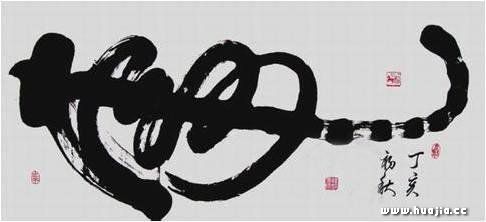 此“虎”真有点形神兼备的感觉。那虎头,虎尾,虎腰,虎姿,似乎虎在捕食。这是水墨“虎”画?还是书法“虎”字?若笔者没有猜错,创作者在江湖上人称“虎王”。抛开“虎”象形的一面,如果您会写繁体“虎”字,您会发现,此乃画虎也。