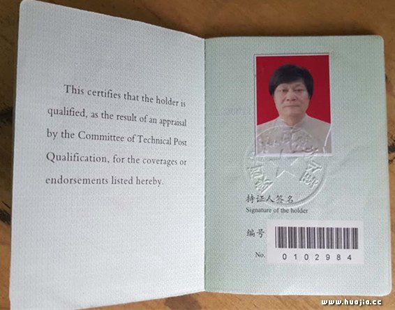真实资格证书内页