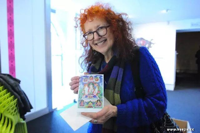▲韩美林与热情的观众们 Loretta女士是一位艺术家,昨天是她第四次来观展,家住维罗纳的她,每次往返需要两个小时的火车车程。得知闭幕式上将见到韩美林,Loretta女士带来一张精致的贺卡,封面是她用了四年时间精心绘制的一幅唐卡的照片,内页则精心地写下了给韩美林的祝福:“To Dearest Han Meilin: Thank you so much for the beautiful information of your art.(致最亲爱的韩美林:非常感谢您的艺术中传递的美好信息。)”她激动地告诉工作人员:“韩美林的艺术展览对我而言非常重要,几乎足以改变我的人生。最触动我心灵的,是韩美林的线条以及他用笔的力度,奔放、刚劲、有力,有深度。真希望有机会,能够成为韩美林的学生。”