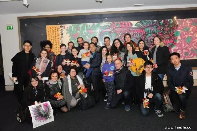 ▲主要嘉宾合影(从右到左:威尼斯大学孔子学院中方院长李树清、韩美林艺术基金会秘书长周建萍、威尼斯大学孔子学院意方院长Marco Ceresa、威尼斯大学副校长Marco Sgarbi、“美林的世界在威尼斯”主策展人Umberto Vattani、韩美林、威尼斯市市长Luigi Brugnano、WWF意大利总干事Gaetano Benedetto、威尼斯大学孔子学院秘书飞笛) 参加闭幕式的200多位观众,都曾参观过“美林的世界在威尼斯”的展览。这些“韩粉”们,在展览期间被韩美林艺术所打动,有的在一幅韩美林作品前伫立三个小时还不舍离去,有的多次参加了韩美林艺术课堂活动,有的报名成为了为展览服务的志愿者,还有的闻讯专程从其他城市赶来,只为一睹古老又现代的东方艺术。得知即将于26日举办展览闭幕式的消息后,这些“韩粉”们纷纷自发报名要求参加。