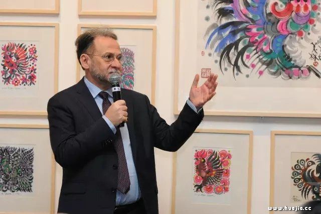 ▲威尼斯大学孔子学院意方院长Marco Ceresa致辞 闻讯而来的威尼斯市市长Luigi Brugnano表示:“感谢韩美林大师让威尼斯的民众,得以感受到当代顶尖艺术家的高超境界。” 世界自然基金会意大利总干事Gaetano Benedetto在致辞中表示:“从韩美林先生的艺术中,我们能感受到他对自然、对动物的真切热爱,对整个人类的深情热爱,这是他的艺术所以能够打动所有人的重要原因。因为普天之下,人同此心,心同此理。” “美林的世界在威尼斯”主策展人Umberto Vattani在发言中说:“韩美林善于使用各种材质,虽然已经80岁,但他仍像年轻男孩一样始终抱有对艺术的热爱。大家都说他是当代的毕加索,但他说,不,我是中国的韩美林。”