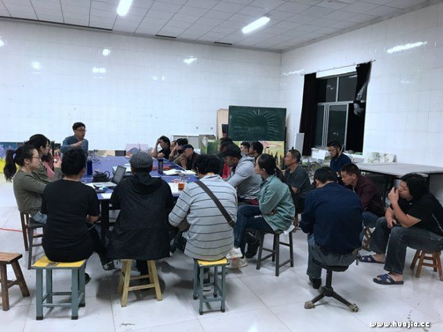中国画教师王海滨评点学员写生作品 研修班学员于4月24日下午到达山东淄博地区的峨庄。到达写生地点后,代课老师韩振刚、张曙光、王海滨就学员的创作水平进行摸底,了解学员的专业创作情况,随后根据学员的情况,系统的给学员们进行辅导与授课。油画专业授课老师张曙光教授,主持过多届高研班的,熟悉情况,教学经验丰富,特别是对短期提高创作的水平有一套教学手段,他特别是对油画的历史,创作思潮进行讲解,对西方现代主义艺术发生前后的油画历史进行专题讲座。刚到峨庄,学员们对绘画的基本原理,基本规律的认识还比较模糊,随着课程的进行,学员们逐渐理解部分理论,并开始在写生创作中付诸实施。在峨庄写生期间,学员们热情高涨,每天晚上讲座都要到10点多钟,学员们在课后还积极讨论,并准备各种材料,为第二天的写生做好准备,在几天的写生时间里,已经创作了大量的写生作品。