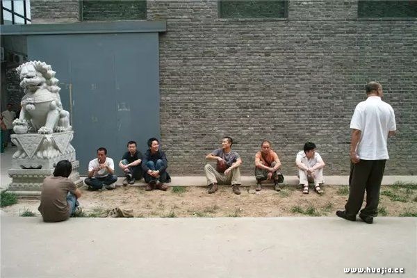 2008 年,在北京草场地艺术区的一个展览上,参加开幕式的艺术家们在室外休息 【编者按】从北京通州区潞城镇北京副中心建设工地驱车,沿宋梁路往北绕过宋庄上京榆旧线一直往东就是白庙村,全程不到10公里。在白庙东北部还有很多经济落后的村庄,其中可以看到一个红砖小楼,墙上硕大的“艺术区”三个字把它和周边的破旧农居区别开,这里的居住者多是从宋庄迁来的。2015年,北京市行政副中心东移通州的政令下达,本已产业化升级的宋庄艺术区更加躁动起来,地区政府的地产规划和商业资本大举介入,使得原本平易近人的农村地价翻倍上涨,从而改变了许多聚居多年的艺术家的生活环境,一些没有经济支撑的艺术家不断向周边更偏僻的地方转移,白庙村的这个“艺术区”楼新建不久,旁边还有另一栋没有完工的建筑。这里有一批我们称之为“职业艺术家”的人。 在当代中国,有多少艺术家称得上是“职业艺术家”,或者,哪一种艺术家能被称作“职业艺术家”?职业艺术家,是指体制外的艺术家,还是指依靠艺术创作的收入来维持生计或者发家致富的艺术家?或许,这个定义并不重要。不可否认的是,这是一个数量庞大的群体,也许是不愿意被称作“职业”艺术家,也许还不愿舍弃那一份“体制内”的工资,总之,声称自己是职业艺术家的人并不多。但是,这并不妨碍我们去走近和接触这一群体。一个月以来,我们走访了北京的宋庄、798艺术区,成都的蓝顶艺术区,上海的新桥艺术区,以采访和走进艺术家工作室的方式,搜集了大量的第一手资料。在这些鲜活的故事面前,一切猜测都显得苍白。那么,中国的职业艺术家的生存状况如何?他们的创作状态又是怎么样的?