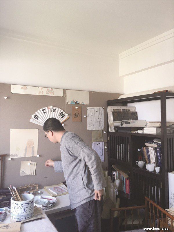 从北京到杭州 到毕立伟家采访时,他正随手用铅笔在茶台的小本子上画着草图。茶台下面靛蓝色的麻布,手工感十足,烧水的铁壶、桌边的兰草、墙上数量不多但经过挑选的近作,还有摆在角落里各种爱不释手的小玩意儿,这位地道的北方汉子移居江南后越发 “精致”了。 4年前,毕立伟在景德镇结识了在杭州工作的夫人,并准备结婚。那时候毕立伟已经在北京待了10年,在燕郊也买了一套房子。“我很了解北京的状态,如果我们留在北京,她的工作要面临每天早起,挤三四个小时的公交去上班,或者在市内负担着高昂的房租,我们在一起的时间也很少,而且她是南方人,对北方的气候也不适应。那时我本身也不想在北京长待了,就是想找一个生活成本低一点,能轻松自在地发挥自己能力的地方去生活创作。”过完年后,毕立伟一直在忙,“刚搬完工作室,还给淄博规划局展览馆做了几个水鸟雕塑,几个城市之间来回穿梭,现在刚刚安定下来,又可以安心地画点画了。”毕立伟喝了一口茶,笑笑说道。