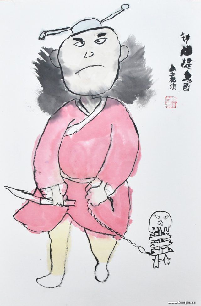 《钟馗捉鬼图》 魏嘉淇 7岁 作者利用好玩的有趣的笔墨表现了自己心中的“钟馗”的形象,诠释了不同阶段对中华民族的艺术符号的不同认识,作品真实的反映了作者的心境,体现出艺术的“真”。(郭德岺)