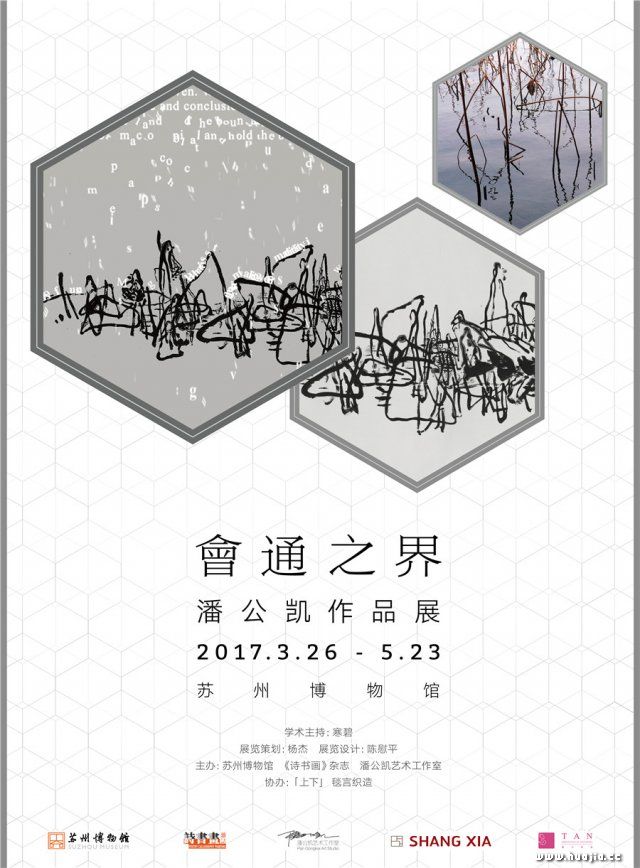3月25日,在上海龙美术馆的个展“坐忘之舟”开幕后,潘公凯与他的团队匆匆赶往苏州博物馆,迎接新个展“会通之界:潘公凯作品展”的亮相。展览由苏州博物馆、《诗书画》杂志社和潘公凯艺术工作室联合主办,寒碧任学术主持,杨杰进行展览策划,并在2017年3月26日至5月23日向公众开放。与包裹着繁星、银河、孤舟等神话元素的“坐忘之舟”不同,“会通之界”带领观众走进了新宇宙,一片“笔墨”与“诉说”的天地。