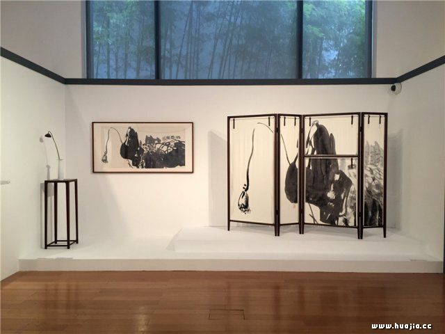 展览现场 目前,高质量的策展计划是国内稀缺的。在这个环节,潘公凯作品展实现了自己“会通之界”的目标,水墨、装置、跨界设计、影像、文献等不同形式、内容的展示元素的穿插并置,各行其道却相得益彰。当观众步行于展厅之中,天窗没有被封闭,透出外头高耸的、摇曳生姿的竹林,勃勃生机泻入展厅。展厅中隔墙上有着一个个菱形窗口,让人毫不憋闷,不禁将目光投向窗口那边一探究竟。在这一刻,每一个人的审美积极性都被调动了起来,“会通”成为了诉说、表达观念的绝佳手段,没有独弦哀歌,没有沽名钓誉,当代艺术的标新立异与锋芒毕露在此刻被消弭,观众不会因为面对古怪而愕然无语,丧失了深入认识艺术背后之精神世界的欲望。潘公凯笔下的一片片荷塘成为了万物齐鸣之地。
