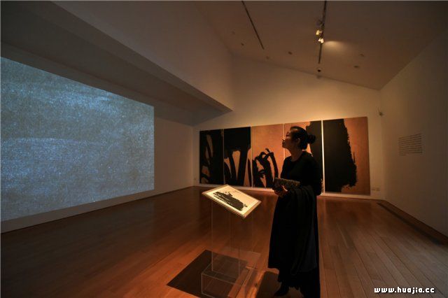 开幕式现场嘉宾 笔墨是语言,语言不是目的 在开展之前,潘公凯对记者谈道,因为展厅空间很小,无法像龙美术馆和中华艺术宫的个展,呈现大体量的作品,但“会通之界”融合了前两个展览的不同特质——传承与超越,跨度极大。展厅外围的两个侧厅分别展示了《融》《寻找真实》两件观念艺术作品,内厅则集中呈现潘公凯多幅大写意水墨。一般来说,在形式迥异的作品中穿梭容易让观众眼花缭乱,如同逛了一场信息量过巨的艺术博览会,但潘公凯却让我们避免了窘态频出。诚如艺术批评家巫鸿所说,“潘公凯的艺术,从装置、到文本、到建筑、到水墨,似乎是明显具有断裂性的,但其实是有很强的延续性、主体性。”这些处在动静之间的作品中,翻涌着同样的文化基因——笔墨。