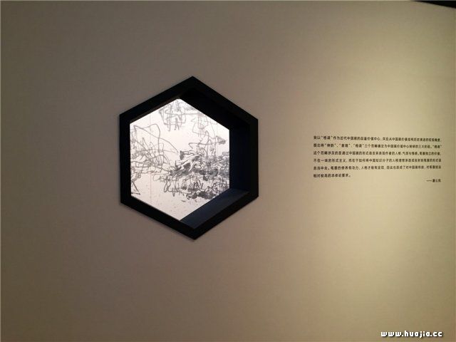 展览现场 不仅如此,潘公凯与策展人杨杰不约而同的强调了他们在策展过程中对保持苏博展厅结构原貌的重视。在采访中,杨杰补充道:“富于文人气息是苏州当地的文化符号,苏博的设计风格也是由贝聿铭融汇了中西建筑特色方才得来。作为一名知识分子形象的艺术家,潘公凯作品展与苏博的相遇有着内在的机缘,我们希望实现潘公凯的艺术创作与苏州城市文脉、与贝聿铭先生的建筑空间作品,形成有机的融合与恰切的对话。并借鉴苏州园林‘造景’与‘借景’的经典方法,作为展厅空间规划的基本原则,将苏博建筑风格部分特色元素引入展陈设计之中,尝试突破以往诸多展览中作品与场域情境之间缺乏互动、甚至逝去关联的陈旧模式,让空间和作品之间共同打造一个全新的、自然的展陈语境。”