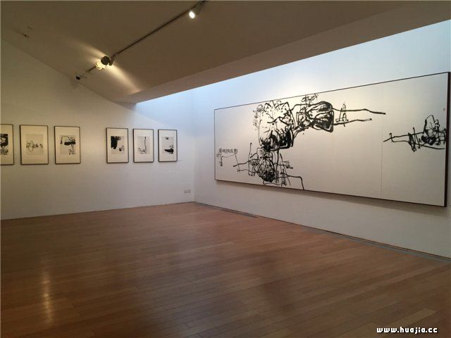 展览现场 曹意强谈道:“艺术家的成长有赖于他所处的环境和身边的资源。潘公凯的艺术源泉在于父亲潘天寿的绘画,但他已将传统程式带上新领域。巨大的尺幅让潘公凯的绘画有了‘展示目的性’,艺术家希望通过自己的作品向观众倾诉,这在藏于私密空间中的传统文人画中几乎是没有的。潘公凯到了美国之后,看到了很多像当代艺术作品,尤其是抽象表现主义艺术,这些画家时常从中国哲学、书法艺术中汲取营养,这些养分又在上世纪的游学潮中反哺给中国艺术家。潘公凯追求线条的力量、抽象的力量、构成的力量。‘经营位置’的理念在中国画中占有很重要的位置,但传统中国画更倾向于追求细微的表达,潘公凯更希望过构成发声。”作为对当下独特的时代语境的思考,潘公凯将自己的创作逐步引向“会通”的融合局面。这是19世纪以来西方各国艺术发展轨迹中的相似之处。音乐、歌剧创作大家理查德·瓦格纳就曾经提出了“整体艺术”的观念,潘公凯则通过笔墨与各色艺术形式载体表达自己对“融会贯通”期盼。