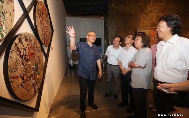 许江(左一)热情的向大家讲述对作品的理解