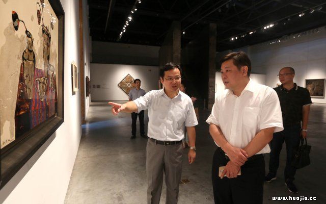 中共宁波市委宣传部副部长张文杰(前排右一)观看作品