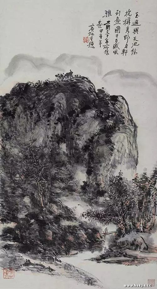 黄宾虹 《山水》 新中国画,属于新古典主义艺术。讲究笔墨的表现力,讲究布局的整体意识,借鉴并吸收西方绘画的某些形式因素,讲究时代精神含量。其追求的是:和谐与优美,重视写生,重视师法自然,在模仿自然中法道共求,重视新技巧新形式的开掘。其主要是指新中国成立以来在叠变层出的政治风潮下成长起来的中国画画家。20世纪下半期的山水画家傅抱石、石鲁、李可染,黎雄才,陆俨少,何海霞、钱松岩等堪为第一代大家。当下新中国画的承继者,秉承前辈的道路,注重写生,追求自然美的升华,在自然美中追寻绘画的形式美,气质美。在美的追求中更多赋予社会意识,感情色彩。人物画,多为现实主义的,西方现代造型方法揉合进传统要求之中,追求思想的明晰性与时代感。花鸟画,更多的象征意味的开掘和布局的平面整体意识,在教化与自我之间摇摆上升。山水画也多被象征,隐喻化处理,被赋予了新的文化精神,其中大多是个人感受性的,实际上是画家在当下社会生存中的感悟和体验。所以,以自然为载体的新中国画在艺术表达上显示了复杂的多样性。