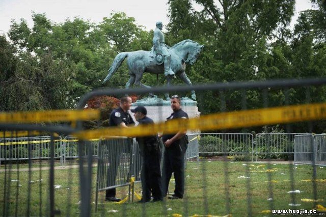 8月13日弗吉尼亚州夏洛茨维尔市内解放公园中心内,警察们在前一天右翼大同盟大游行爆发后,在罗伯特·李将军的雕像旁站岗。图片:Photo by Chip Somodevilla/Getty Images 上周末,弗吉尼亚州夏洛茨维尔市所谓的“另类右派”(alt-right)分子掀起了一股暴力示威活动,参与者包括新纳粹分子、白人民族主义者以及其他极端分子。矛盾的焦点就是矗立在市内的为纪念南北战争阵亡军人的雕塑(Confederate monuments)。 作为“右翼大同盟”(Unite the Right)集会的一部分,那些极右团体沿着大学城一路前行,抗议市政府有关将罗伯特·E·李将军(Robert. E.Lee)雕像从解放公园移除的决定。这一游行最终爆发成了导致3人死亡几十人受伤的暴力冲突事件,而在第二天几个南方城市的官员重新宣布将这些象征南部邦联的纪念碑从公共场地移除。