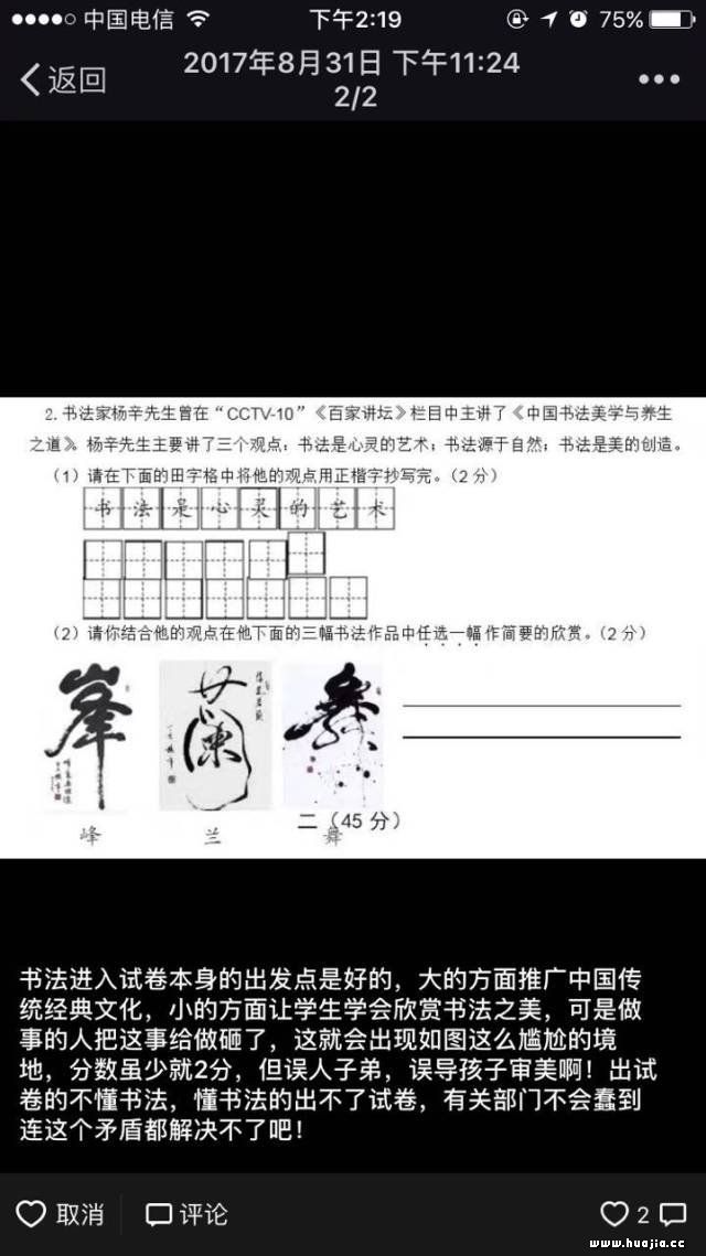 中考试卷惊现“江湖书法”,网友愤怒引爆朋友圈2017.09.02 10:01 来源:深圳市书法院 发表评论(0)