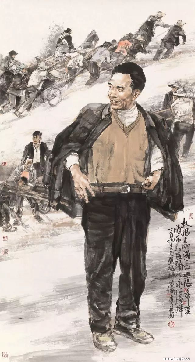 创作中的徐里 记者:美术作为展示国家形象的重要载体,为中国塑像,举足轻重。您认为什么样的作品最能代表中国声音,展示国家形象? 徐里:今年7月,习近平主席对德国进行国事访问并出席在德国汉堡举行的二十国集团领导人第十二次峰会。同期,中国美协承办了在德国柏林举办的中国美术作品展,题为“感知中国·最美中国人”,取得了很好的效果。我们选择了中国艺术家和中国人民心中最美的形象,这其中有《雷锋》《高德荣画像》《焦裕禄》等时代楷模,也有《风雨兼程的乡村邮递员》这样的普通中国百姓,76幅人物画连在一起构成了中国最美的群像长卷,中国人民的勤劳、善良、智慧以一种直观、生动的方式呈现在了国际友人面前。德国观众在这些作品前驻足,通过这些艺术作品触摸当今中国的时代脉搏,了解当今中国的时代风貌,这种方式对中国文化和价值理念的宣传与传播是潜移默化的。