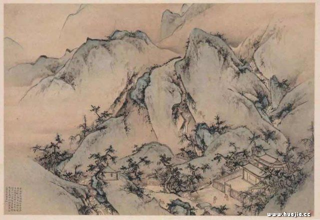 “吾师心,心师目,目师华山。” 他画的主要是陕西华山的风光。 王履是个医生,看来还是个唯心主义者。如果说傅山是医生中有名的书法家,那么医生里有名的画家就是王履了。 他生活在元末明初,画面中有不少继承了元代风格的影子。 这套华山图册有画家极小的题诗,而且每开都有一个很小的小人,大概是画家自己在华山中游戏的样子。 北京故宫也有这套册页的其他部分,可以对照起来看。