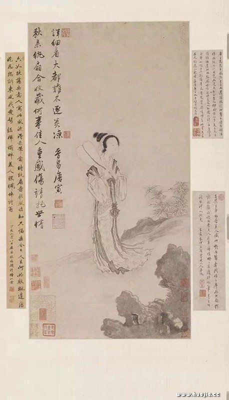 明 唐寅 《秋风纨扇图轴》 上博竟然拿出这轴画来展,实在是没想到,这幅画在上博新馆从未展出过,如果你硬说你见过原件,要么是2008年在辽博,要么就是在梦里~ 大家都知道唐寅会画仕女人物,但说实话,他靠谱的人物画数量很少,可能不超过五根手指头,而这件是鉴定家唯一共同认可的作品。 上面唐寅的自题诗特别有名,“秋来纨扇合收藏,何事佳人重感伤,请把世情详细看,大都谁不逐炎凉。”简直就是画意与身世的结合,是了解唐寅的一件重要作品。 上博专家说:“这本我们自己都舍不得展!”