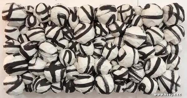 王南溟《 字球组合》1992 墨、宣纸、木板 50x100cm 1992 装置、影像、行为艺术始于西方,也是工业文明所带来的世界格局天翻地覆的变化让艺术家脑洞大开的产物。杜尚的现成品——便池《泉》的出现,被认为是20世纪艺术的一个重要里程碑。颠覆了艺术的杜尚引领了当代艺术潮流,他并不属于任何一个派别,只遵循心灵自由的杜尚也被后人誉为后现代之父。如果说由后继者劳申伯格与安迪沃霍尔掀起的波普艺术进一步影响了谷文达、王广义、张晓刚、尚扬等九十年代发迹的中国艺术家,而今,投机波普艺术的大气候在中国也已成为不可逆转的成功模式。1992年,王南溟推出了他的作品《字球组合》观念装置录像(艺术家将本人书写的一幅幅传统书法作品揉成字球,将字球按照视觉要求堆放或吊挂等方式放置在未完成的建筑之上),并在1994年出版的《理解现代书法》一书中,提出了“现代书法不是书法”的理论。没有明白这个道理是所有的当前不伦不类的现代书法和前卫书法的病根,以至于使书法成为了现代书法的障碍。按此逻辑,他把陈光武的重写书法(阴阳上下两层宣纸的重复书写)归类为“后抽象”,把刘超、傅中望和吴味的作品归类为“观念艺术”。作为“观念艺术”的现代书法已经与书法本义相去甚远,而作为陈光武“后抽象”的阴阳双重书写被夏可君纳入其不知所云的“虚薄”体系,也只是一个借尸还魂的怪胎。王南溟对“现代书法”的颠覆实质是让“书法成为一种创作的资源”,这也让他的“现代书法”理论再也无法向前推进,他的“现代书法”作品在《字球组合》之后也再无突破。值得警惕的是,当“汉字艺术”汹涌而来的时候,我们应该清楚,它不过是改头换面、换汤不换药的“现代书法”而已。