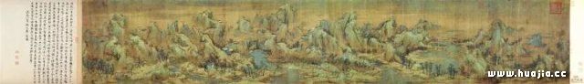 北宋后期青绿重彩山水画复兴,流传至今最具代表性的作品应该是赵伯驹的《江山秋色图》卷。而不是据传为宋代“希孟”所画的《千里江山图》。因为《千里江山图》的成画时间,是一个颇有争议的问题。虽然如此,但这并不妨碍,《千里江山图》是中国绘画史上的一幅杰作。 《千里江山图》作为一幅青绿山水巨制,其有据可查出现于世的时间是明末清初。关于这件作品,在它横空出世之前,无任何文献记载。就“希孟”这一画家而言,宋代历史上查无此人,无文献可考可证。从风格到色彩到绢本也都有让人质疑的地方。对于这件作品的考证,只是因着一个蔡京的真伪难辨的题款,就权作是宋代作品,莫免有些草率。清代乾隆钦定《千里江山图》为宋代作品,有清一代,无人触碰这一问题,当然有情可愿。但今天的故宫及相关研究单位,不应该搁置这一问题。但现实似乎相反。更有甚者,还继续润色加工所谓少年画家的传奇故事以代替研究考证的声音,这与古玩市场的编故事忽悠买家没有本质区别。 仅就蔡京的题跋而言,有研究者就认为是后来拼接上去的。蔡京所题的跋宽度和高度都与画的比例极不相称,也就是说蔡京所题写的并非我们今天看到的《千里江山图》。做这个拼接活的是明末清初的梁清标,是他向乾隆进献的此作。而向乾隆推荐此作的人是王牧仲,也是王牧仲在一首《千里江山图》的赞诗中让“希孟”姓王。在此之前的宋、元、明三朝,从没有出现过一次这幅作品。蔡京本人曾参与主持《宣和画谱》这一美术史巨著的编辑工作,想必对艺术史的熟知和对绘画的研究,也有一定水平,但关于《千里江山图》也没见他有任何文献记录留下。 关于南宋时期《千里江山图》进入内府一说,是因为在作品开篇处盖有宋理宗时期内府图书馆”缉熙殿“的收藏印章“缉熙殿宝”一印。但是这方印已经模糊难辨。虽然印章模糊不清,但对于研究这幅作品还是非常重要的。可是,就在这方本已模糊不清的印章上,乾隆竟将”三希堂精鉴玺”直接盖在了上面。这是否说明:乾隆虽然认为这是幅杰作,并不认同宋理宗时期的这方“缉熙殿宝”是真的。关于”缉熙殿宝“印章,自清代以来,有大量的造假书画盖有这一方印章。有兴趣的朋友可以通过图书馆、百度等查阅。 "孤本一幅、年轻早逝、无文献记载,宋、元、明三代无迹可寻", 让《千里江山图》的考辨有了相当的难度。但随着科学仪器的精微,随着图像学和历史风格研究的进一步展开,随着对伪造辨析研究的不断深入,《千里江山图》的出生之谜,终将会解开。 关于《千里江山图》的辨伪考证,不是本文的主题,本文的主要目的,是介绍来自宋代皇族的画家赵伯驹的青绿山水长卷《江山秋色图》。之所以在此对《千里江山图》的真伪之辩做了简单介绍,其目的当然是为了进一步强调《江山秋色图》才是一幅真正的宋代青绿山水画巨制,有着很高的历史价值、艺术价值和研究价值。