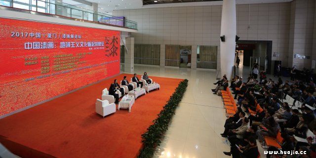开幕式结束后,展览学术论坛同期召开。中国美协理论委员会副主任、中国国家画院副院长、《中国美术报》总编辑张晓凌,中国美协策展委员会副主任皮道坚,中国美协漆画艺委会主任、厦门大学艺术学院美术系主任陈金华,中国美协美术教育委员会委员、福建师大美术学院院长李豫闽,中国美协研究部主任冯令刚等五位专家就“中国漆画:地域主义文化崛起的象征”这一主题进行讨论。论坛由张晓凌担任学术主持。