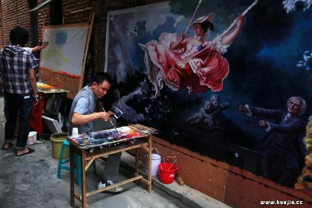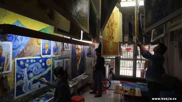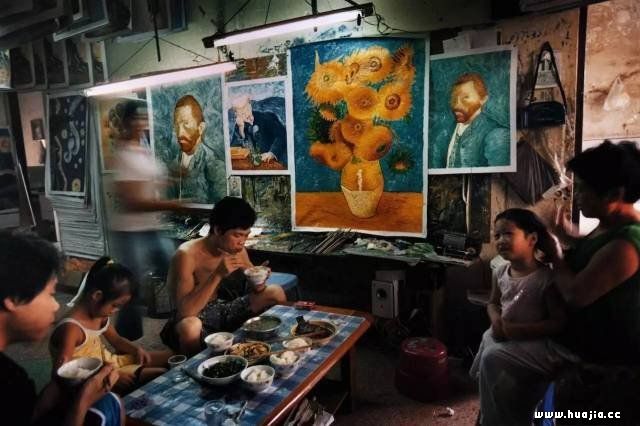 80年代,香港商人黄江, 在这里建起了第一个油画工厂, 他招揽了60多个农民工, 手把手教他们画画, 只用了短短几个月, 源源不断的仿制名画, 便从这里流向了世界各地。
