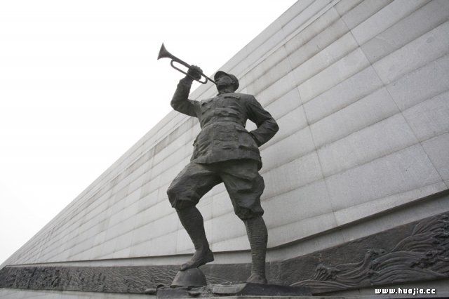 胜利号角 位于纪念馆入口处的第三篇章《冤魂的呐喊》,是一座被劈开的山,一边的山顶上一只手直指苍穹,一边的山体上被绳索捆绑的人群密密麻麻,即将被屠杀。来此参观的人们都要通过这道死亡之门、屠杀之门,才能走进那段历史。纪念馆主体门口位置那堵120米长的“胜利之墙”就是群雕的第四篇章,8米高的墙上一个大大的“V”字贯穿始终,底部昂首吹军号的中国军人脚踏日军的钢刀和头盔,“V”字一边是黄河在咆哮,中国军民“大刀向鬼子们的头上砍去”,另一边是滚滚长江奔腾不息,胜利的部队凯旋南京。 10年前的12月13日,南京大屠杀70周年纪念日,这组雕塑正式亮相,建筑大师吴良镛院士评价道:这组群雕将当时的人间浩劫展现在拜谒者眼前……这里没有一点多余的笔墨,只是苦难同胞在野兽奴役下的恐惧悲号与死亡前的挣扎,展现了人类罕见的历史悲剧,是雕塑的史诗。”