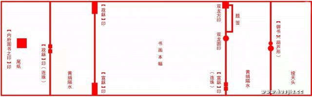 十问:《江山图》流传有序? 我的“王之希孟”一文在《展记》发表前,没有学者如我把每一方印都仔细阅读、遇到自己不能判断的就请印鉴高手帮助一一辨认清楚。特别是那方理宗时期的“缉熙殿宝”印已经被洗到几乎看不出眉目,我也是动用了做图工具在电脑上处理之后才辨认出来的。但是在我把印章读完之后,则掩卷深思,感到这张画的问题非常清楚了。因此在《王之希孟》一文中,本着一定要在尊重历史的前提下给这件作品找出一个正面的说法的思路下,写就了那篇文章,并且把这件作品上的种种低端常识性的硬伤都按下不提。我以为,我的文章一出,再跟一些负责人和学长学弟沟通一下,慢慢地大家都能看到我已经看到的问题,在和谐为原则的学术氛围基础上、厘清是非再兴千年传承并以之为鉴借打造当下历史。没料到一切都居然按照你们亲眼见到的状态发展了……出于史学良心和学术的尊严,我不得不在九问之后把这些印章的问题拿出来作为最后一问。 《三次装裱五次进宫》实际是针对我的《王之希孟》一文的直接回复,并且作者用了这些印章做出一个言之凿凿的《千里江山图》“流传谱系”,但是该作者居然没看出历史常识性的问题,我深感遗憾。下面是根据他的叙述列出的谱系顺序,然后直接附上我的问题:
