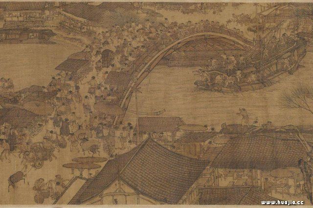 宋 张择端 《清明上河图》局部 北京故宫博物院藏 再者,你根据什么来证明王希孟有处理税务文书档案的能力?如果禁中真的有个文书库,在那里工作一定是个上好的差事。一个福建来的、只有十四五岁的孩子,没有受过良好的文化教育,从无参加任何层次的科举考试的记录、更没有财会能力,怎么能够在大宋皇城内的重要部门工作?