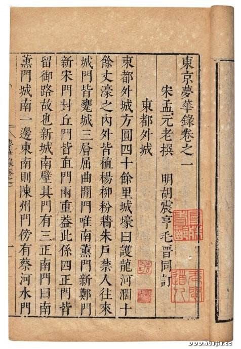 宋 孟元老 《东京梦华录》 描述北宋东京最具权威的孟元老在他的《东京梦华录》中提到金耀门,并且把它收在“东都外城”一章:北城一边,其门有四:从东曰陈桥门(乃大辽人使驿路);次曰封丘门(北郊御路);次曰新酸枣门;次曰卫州门(诸门名皆俗呼。其正名如西水门曰利泽,郑门本顺天门,固子门本金耀门)。”无论从哪个角度看,仅仅以地理位置论金耀门文书库绝对不可能是“禁中文书库”,而徽宗也不可能到金耀门给这个画家亲自指点绘画技巧。 学者改口修正是可以的,但信口开河必须慎为。