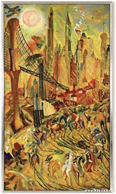 郭祥忍 寿山田黄石 “九龙戏珠”印纽 北京匡时2017年秋拍 此寿山田黄石 “九龙戏珠”印纽由寿山石印纽大家郭祥忍操刀,龙玺为正方形,长宽均为9.3厘米,高11厘米,重达1709.5克,是迄今为止已知的最大田黄玺印。1.0925亿元的成交价打破了田黄印章拍卖纪录并成功跻身“亿元俱乐部”。 ·TOP26 朱沅芷《工业之轮在纽约》 1.05亿港元(约合人民币8707万元)