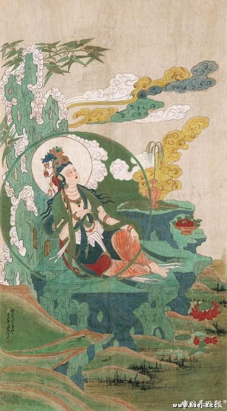 张大千 水月观音 镜心 设色特制画布 癸未(1943年)作 158.5×87.5 cm. 62 3/8×33 1/2 in. 约12.4平尺 中国嘉德2017年秋拍 《水月观音》为张大千稽古敦煌后的雄心力作,也是市场唯一所见敦煌时期工笔重彩青绿描金的水月观音。此作由北美曹氏默斋收藏,曹仲英对此作极为珍爱,2010年,其去世前集结出版的《近现代中国绘画集萃——曹氏墨斋藏》就是以《水月观音》的局部作为封面之一。由于特殊的历史原因,上款人姓名已被刮去。 自1992年以来,中国艺术品拍卖市场始终有条不紊的发展,且屡破纪录。三十多件的亿元拍品也是发展至今所创下的拍场纪录。2017年有无数让我们振奋和感动的艺术拍品,相信在2018年甚至未来的艺术市场中,会有更多值得期待的精品。重要艺术家的重要作品是市场中永恒的热点,这是对艺术的尊重,也是对虔诚的艺术创作者的尊重。