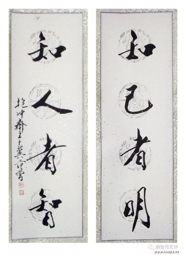 二、画字风格明显 范曾刻意自我包装。有人认为,范曾的画字风格明显,很多字重心不稳,结构松散;不少字被着意扭曲,状如受刑之人,不忍目睹。 三、作品如乱石铺冈 有人指出范曾的书法,没有悟到黑白间“相避相形、相呼相应之妙”,每个字各自为战,少有呼应,更不用谈什么行气,字染馆阁体之病,章法、结体、布局如乱石铺冈。