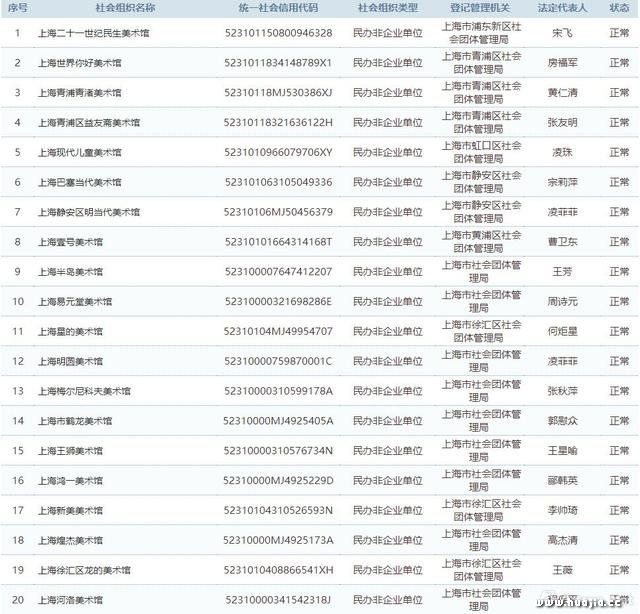 42家以“美术馆”为名 成功在上海申请到“民非”的机构 博物馆