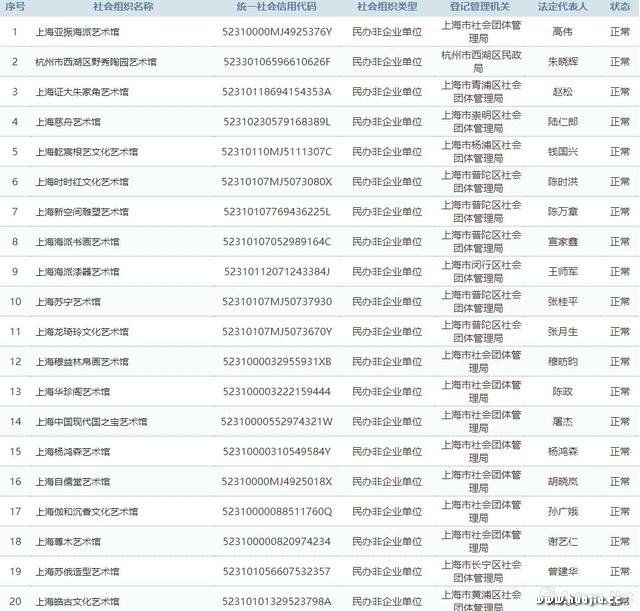 33家以“艺术馆”为名 成功在上海申请到“民非”的机构 南京 美术馆