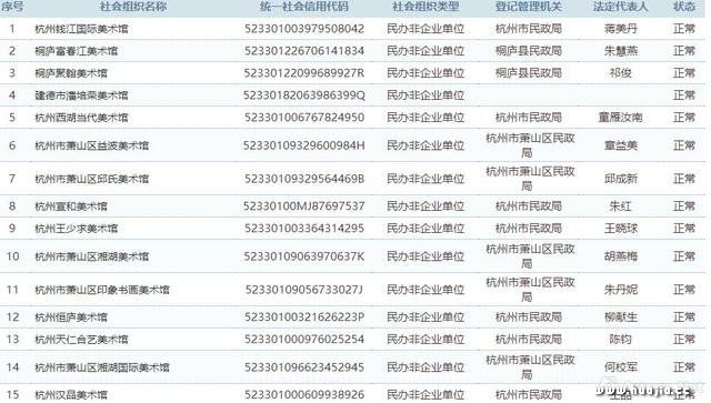 15家以“美术馆”为名 成功在杭州申请到“民非”的机构 博物馆