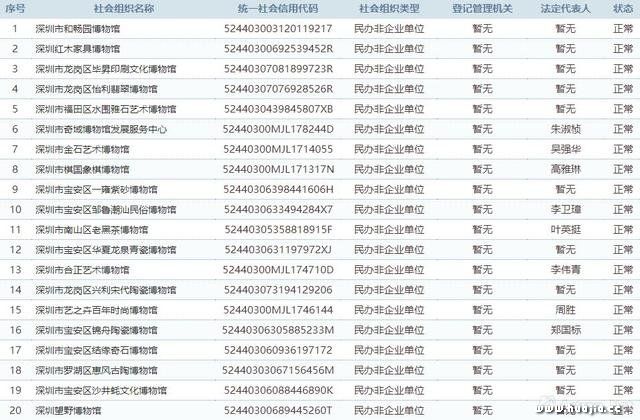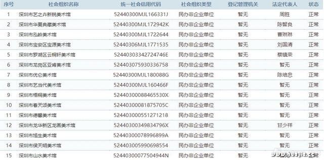 15家以“美术馆”为名 成功在深圳申请到“民非”的机构 博物馆