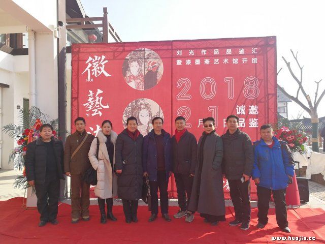 2018年2月1日上午,徽艺染墨·刘光作品品鉴会暨漆墨斋艺术馆开馆仪式在安徽省淮北市相山区隋唐运河古镇隋堤怀古(5#158号)漆墨斋院前广场隆重举行。 淮北市美术家协会常务副主席兼秘书长周力,宿州市美术家协会秘书长、著名画家蔡白,中国美协会员、漆艺家、画家刘光,淮北安兴古镇公司副总经理王思韵,策展人梁伟先生、吴然先生以及自淮北市三区、濉溪县和周边市、县、区的书画艺术家协会、收藏组织的负责人和社会各界的朋友们近300人参加了徽艺染墨刘光作品品鉴会暨漆墨斋艺术馆开馆仪式。