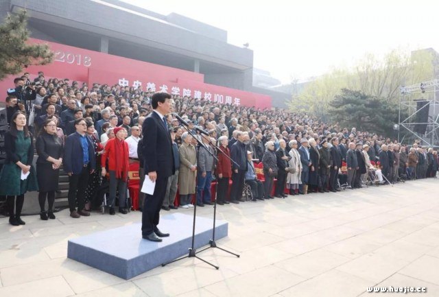 “一百年前的四月,中央美术学院的前身国立北京美术学校诞生,开创了中国现代美术教育的新纪元。一代先贤筚路蓝缕,奋力开拓,引进西学,传播新知,以新文化的理想建立中国美术教育的现代型态,以面向社会的美育理念从事文化启蒙的中国实践。80年前的四月,延安鲁迅艺术学院美术系成立,翻开了党领导的人民美术教育的新篇章。在毛泽东文艺思想指引下,大批美术家奔赴抗日前线,记录和反映中国人民浴血奋战的壮丽史诗,描绘和表现抗日民主根据地崭新社会风貌,形成了革命美术的优良传统。1950年的今天,随着新中国的诞生,以徐悲鸿先生为代表的国立北平艺专的艺术力量与从延安走来的革命美术队伍相汇合,成立了中央美术学院,开启了新中国美术事业和美术教育事业的新进程。”他在致辞中满怀深情回望百年,他表示,百年来,中央美术学院涌现出一大批名家大师;百年来,中央美术学院创作出一大批经典力作;百年来,中央美术学院培养了一大批杰出人才。