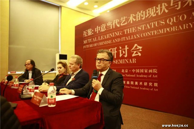 研讨会现场 在“跨文化视野中的意大利当代艺术展”这一艺术盛事即将在凤凰古城开幕之际,2018年4月8日下午,“互鉴:中意当代艺术的现状与未来”研讨会在中国国家画院举行。