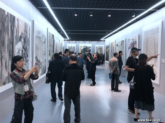 开幕式现场 本次展览作品涵盖了山水、人物、花鸟,题材广泛、内容丰富,形式多样。参展作者们深入挖掘历史文化遗产的内涵与价值,展示现代邮城风情,描绘运河两岸自然、人文风貌,深情表达了运河儿女的家国情怀。此外,新农村风貌、自然生态、低碳环保、科技振兴、现代工业、市井气息以及少数民族等题材也均有涉猎,作品笔法练达、精工细致,部分佳作在继承中国画优秀传统的同时,颇具新意。